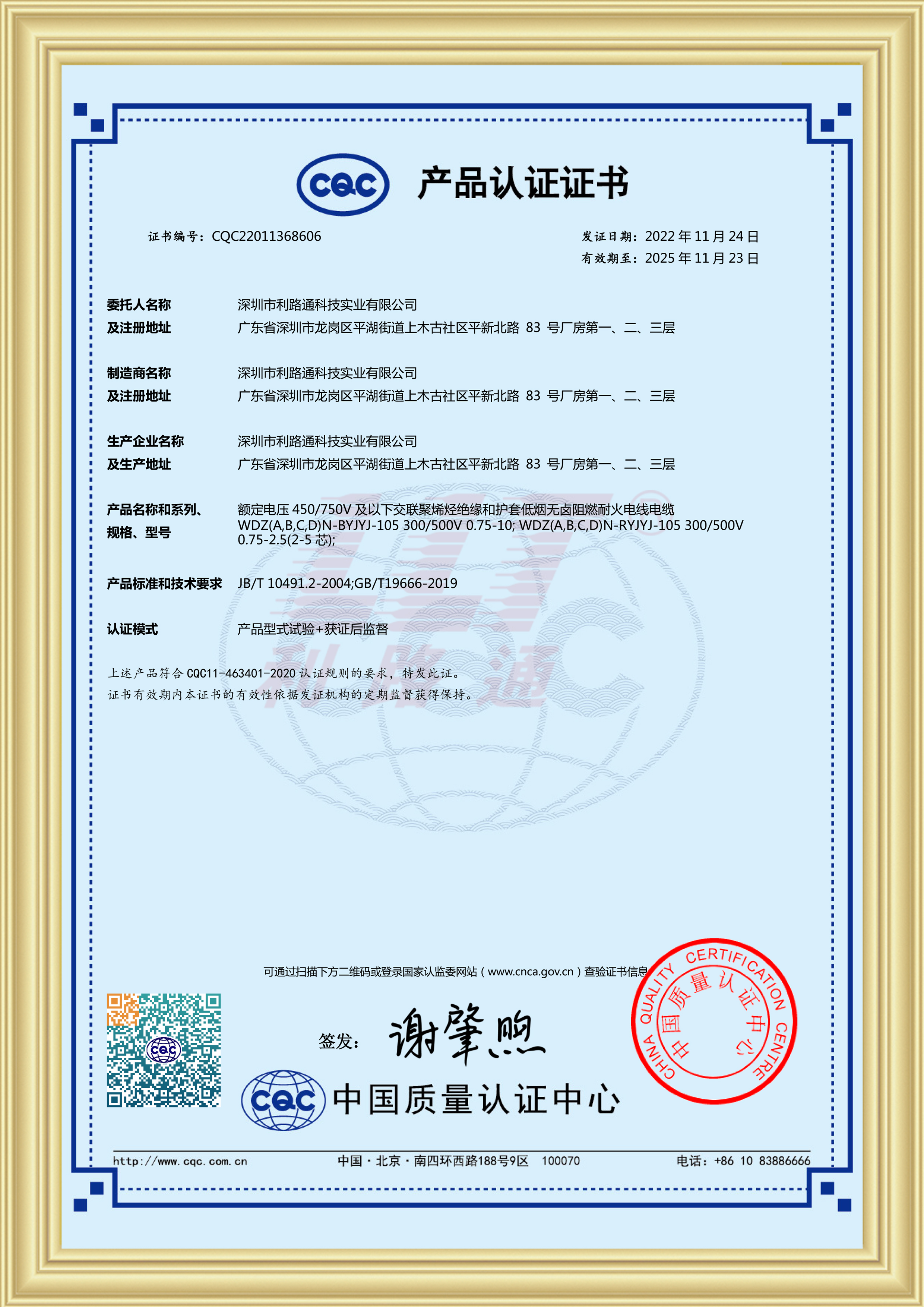 低煙無鹵阻燃耐火電纜(CQC認(rèn)證)